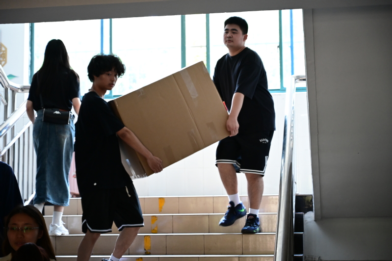 搬迁过程中,邵阳全程指导,多次赴现场实地察看、了解情况,统筹协调搬迁工作。学工部、各系学生工作负责人、辅导员深入一线及时回应搬迁过程中学生困难与诉求,全过程处理现场紧急突发状况。“老师,我今天的火车票,搬迁来不及怎么办?”“好,马上帮你安排中转房间。”公寓办为搬迁的同学准备了编织袋、记号笔、运送车辆、防暑物资等,保障搬迁工作安全、有效进行。