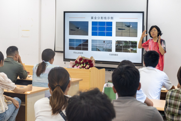 《摄影摄像技术》课上,石静老师讲解了常见的拍摄器材、手机的摄影摄像技巧,重点讲解了“花”的拍摄方法。操作环节,在教师布置好拍摄道具后,学员现场使用手机拍摄了各类鲜花图片,教师对拍摄作品进行一一点评。