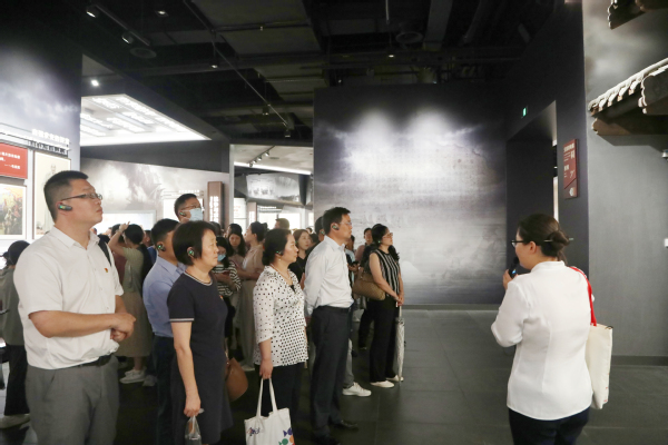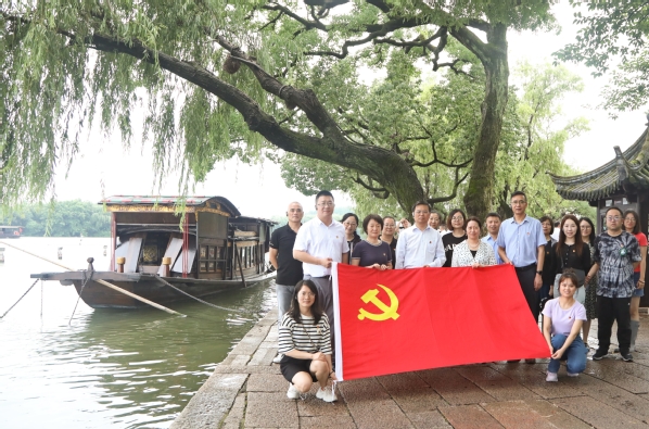 在南湖革命纪念馆,参观《红船起航》主题展。通过“救亡图存”“开天辟地”“光辉历程”“走向复兴”四个专题展,回顾了中国共产党自1921年成立至今的发展历程,团结带领全国各族人民为争取民族独立、人民解放和实现国家富强、人民幸福而不懈奋斗的光辉历史。在沉浸式的参观中,深刻感悟中国共产党人历久弥坚的初心和使命,深刻领会“开天辟地、敢为人先的首创精神;坚定理想、百折不挠的奋斗精神;立党为公、忠诚为民的奉献精神”的红船精神。随后来到纪念馆宣誓墙前,面对着鲜红的党旗,党委书记蔡红带领全体党员干部重温入党誓词:“我志愿加入中国共产党,拥护党的纲领,遵守党的章程,履行党员义务……”掷地有声地宣誓,是每位党员“不忘初心、牢记使命”的铿锵誓言。