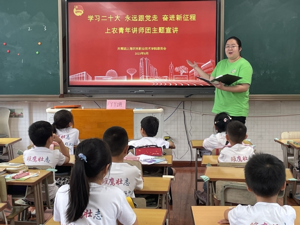 教育部面向全国高校启动“习近平总书记与大学生在一起”学习分享活动以来,学院积极响应,迅速部署,在全院学生中广泛开展学习活动,鼓励广大上农青年学习习近平总书记重要讲话精神,深刻领悟习近平总书记对青年的寄语。近日,上农青年讲师团走进岳阳街道爱心暑托班,以青春的视角、青春的表达开展主题宣讲。