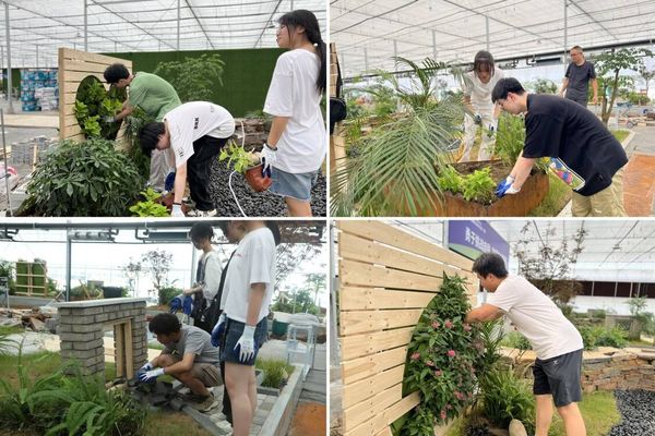 实操培训于当日下午在国赛赛场开展,刘益曦教授结合赛项技能要点对国赛参赛作品的砌筑、木作、铺装、植物造景等施工工艺进行现场点评,参训师生实地观摩了来自全国29个省(自治区、直辖市)55支队伍的作品。观摩后参赛师生在专家的指导下,针对国赛中易疏忽的植物造景环节和极具创意构思的景墙设计等环节进行了模拟训练,在指定工位上利用现场植物和绿墙、小筒瓦等进行施工实操。参训师生表示,这是一次难得的机会亲临国赛现场进行学习,通过专家指导,对施工要点和难点有了更深入的学习和思考,此次培训受益匪浅。