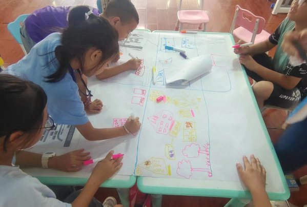 在此期间,团队成员扮演“家长的小助手”对孩子的出勤、锻炼、饮水等生活习惯进行观察并记录,为家长提出儿童健康相关改善建议。随后,为切实加强青少年的安全意识,预防和减少暑假各类安全事故的发生,学生为在场的孩子进行常见紧急情况处理方法的讲解。书法实训中,学生带领孩子从一笔一划、一撇一捺中领略汉语言文字的奥秘和风采,品味中国书法的多彩艺术形式和深刻精神内涵。学生在支教期间与孩子一同玩乐、学习,用爱和陪伴助力孩子度过一个安全、快乐、有意义的假期。
