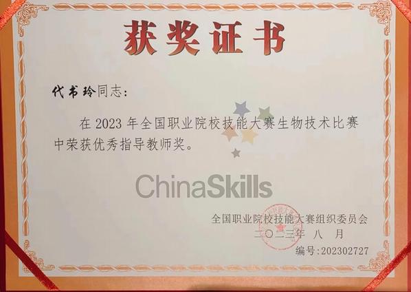 全国职业院校技能大赛是检验职业教育人才培养质量的试金石,本次获奖是学院不断深化“三教”改革,持续推进人才培养质量的重要成果体现。学院将进一步深化生物技术类专业的教学内容与职业标准的对接,进一步推进专业建设与课程改革,提高人才培养质量。