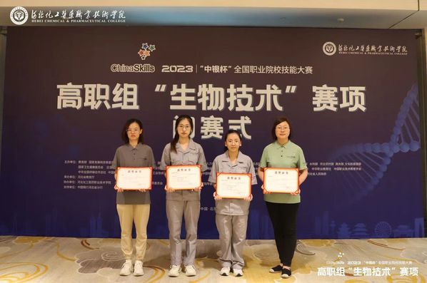 8月25日-27日,2023年全国职业院校技能大赛(高职组)“生物技术”赛项在河北化工医药职业技术学院举行,来自全国各高校53支队伍106名参赛选手同台竞技。经过激烈角逐,生物医药与健康系学生刘佳楠、梁怡然荣获团体一等奖。指导教师代书玲、刘影老师荣获优秀指导教师奖。