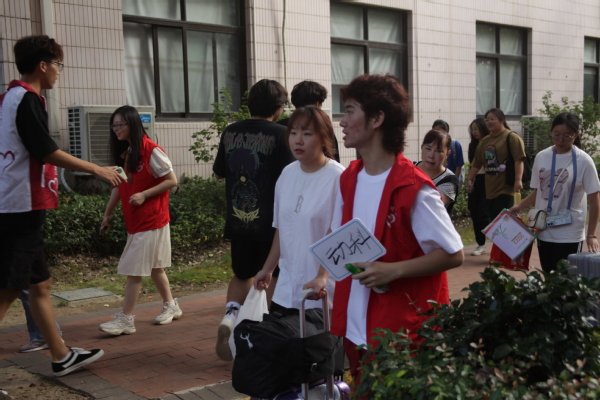 早晨6:30,各位志愿者准时到岗,以饱满的精神面貌投入到迎新工作中。他们身穿醒目的系部志愿者服装,分布在校园的各个重要位置,积极协助新同学核查信息、登记注册、搬运行李和寝室入住等工作。