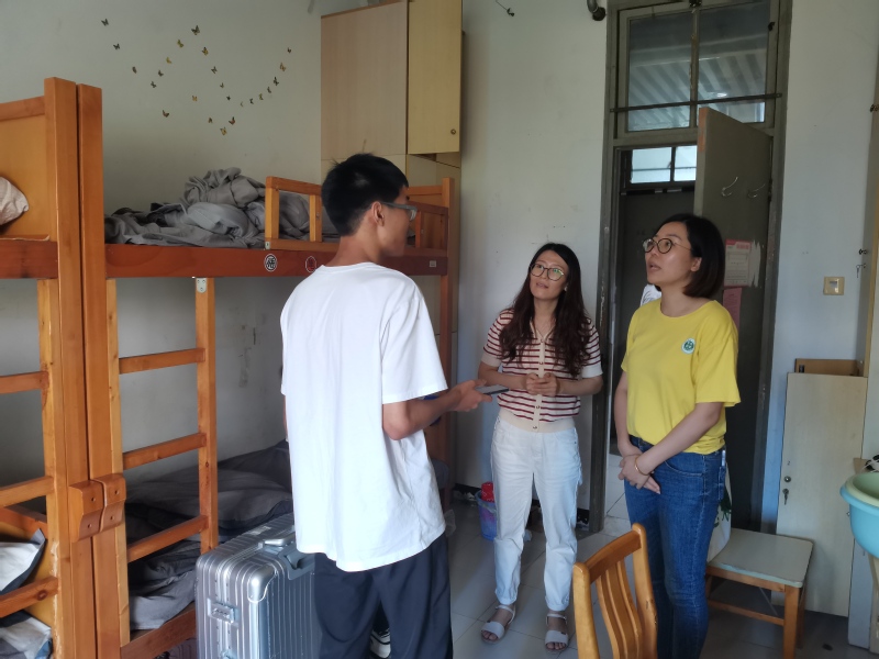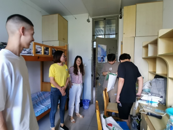 走访过程中,老师们与学生亲切交谈,细心询问学生在宿舍生活中遇到的问题并一一解答,对学生入学后的需求和困惑进行答复,提醒学生尽快整理好宿舍、安排好学习和生活,做好新学期的学习规划,以积极的态度、崭新的面貌投入到大学校园生活中。