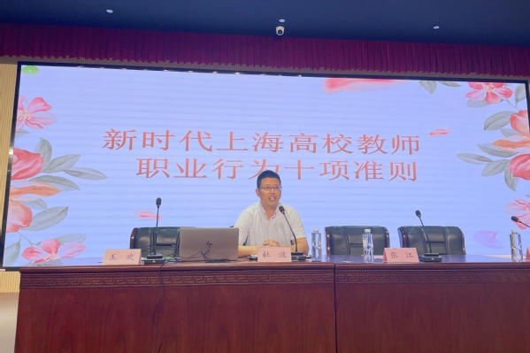 杜波对《新时代上海高校教师职业行为十项准则》进行了深入解读。坚定政治方向。坚持以习近平新时代中国特色社会主义思想为指导,坚定理想信念,拥护中国共产党的领导,贯彻党的教育方针;自觉爱国守法。忠于祖国,忠于人民,忠于教育事业;传播优秀文化。带头践行社会主义核心价值观,自觉传承中华优秀传统文化、革命文化和社会主义先进文化;潜心教书育人。落实立德树人根本任务,培育德智体美劳全面发展的社会主义建设者和接班人;关心爱护学生。严慈相济,诲人不倦,真心关爱学生,严格要求学生,做学生良师益友;坚持言行雅正。为人师表,以身作则;遵守学术规范。严谨治学,力戒浮躁,潜心问道,勇于探索;秉持公平诚信。坚持原则,处事公道,公正公平,光明磊落,为人正直。讲信用、重信誉、守承诺。坚守廉洁自律。严于律己,清廉从教;积极奉献社会。履行社会责任,积极服务社会,努力为经济社会发展贡献聪明才智。
