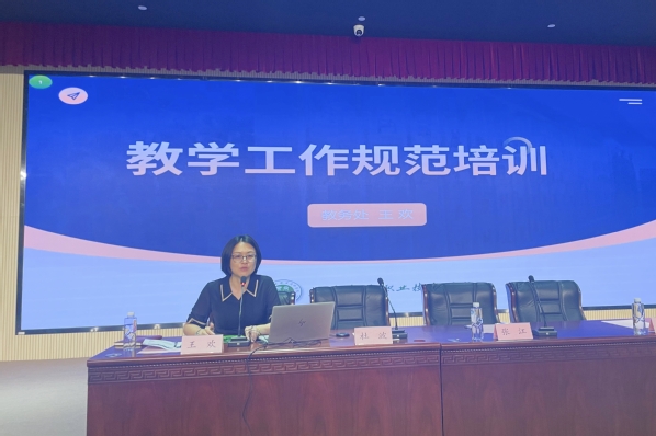 王欢对与会外聘教师进行了教学工作规范培训,从课前准备、课堂教学、课后工作、课程考核四个方面进行了深入剖析。开课前要核对选课学生人数及名单、熟悉教学材料、准备教学资料、做好学情分析。课堂教学中要维护课堂教学秩序、做好学生考勤,严格执行课堂教学规范。课后要合记录,注意课堂礼仪和课堂衣理布置课后作业,明确作业提交要求。及时认真批作业,从学生作业完成情况进行教学反思和改进。课程考核分则上不论何种性质的课程考核都应采用考试和考查两种考核性质,原形成性考核与终结性考核相结合的方式。