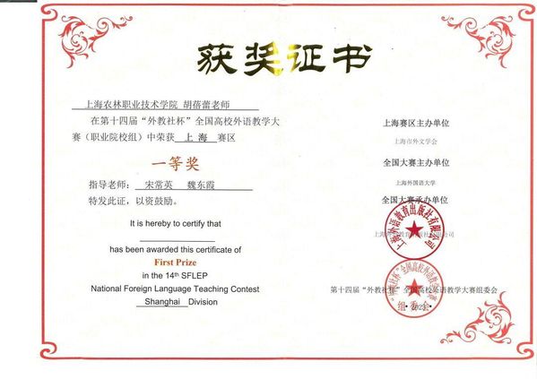 由上海市外文协会主办,上海外语教育出版社承办的第十四届“外教社杯”全国高校外语教学大赛上海赛区决赛于2023年暑期成功举办。经过激烈角逐,基础部胡蓓蕾老师获得职业院校组一等奖。