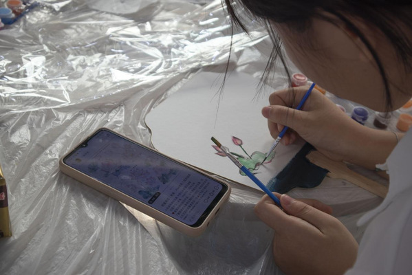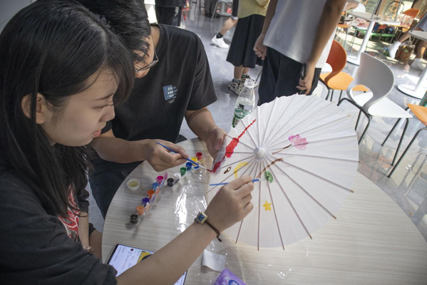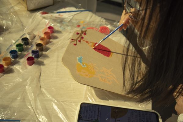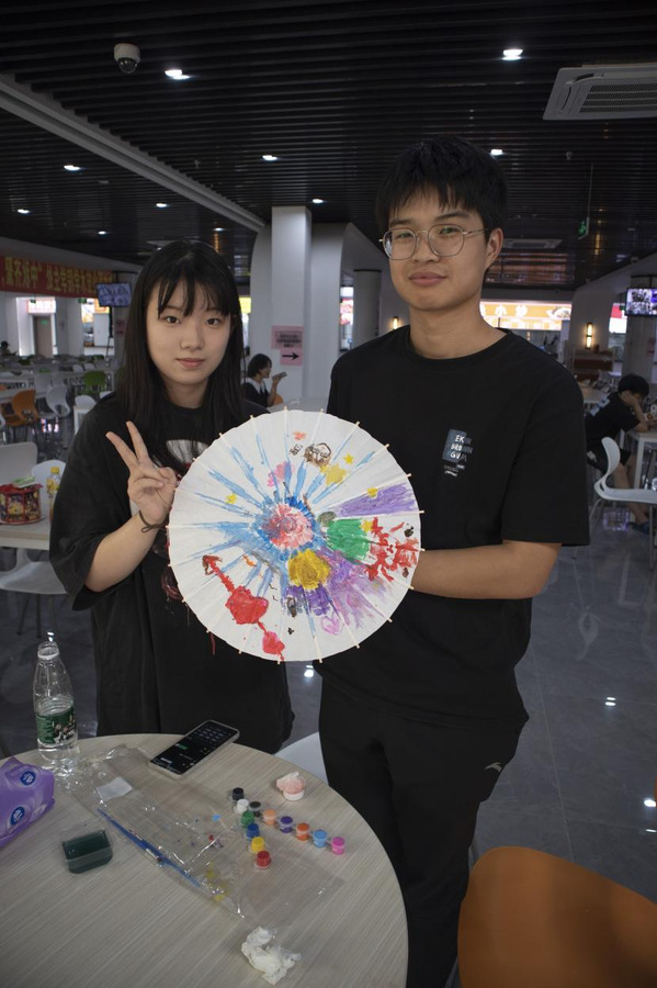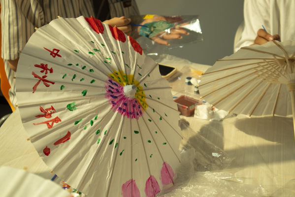 非遗团扇、纸伞DIY。团扇是中国汉族传统工艺品及艺术品,有着团圆友善、吉祥如意等美好寓意。同学们发挥想象力,挑选喜欢的颜色和图案,构图上色,进行创作。团扇轻摇,纸伞流转,带来的不仅仅是徐徐清风,更是一脉相承的文化底蕴。