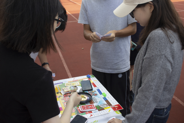 第二环节是摊位桌游,也是本次活动的一大亮点,通过提前招募游戏摊主、提供游戏素材,组成12组各式各样的小型桌游,让参与同学根据喜好选择不同的摊位游戏。厨房小偷、谁是卧底、狼人杀等益智游戏,十分考验同学们的默契与想象力,集合了所有参与同学的创意和智慧;涉及回合制玩法、地产交易以及各种机遇事件的大富翁游戏,着重考验运筹帷幄能力和经济管理能力,提高了同学们的战略思维能力;中国象棋是中华民族智慧和文明的重要组成部分,通过下象棋既锻炼了同学们的逻辑思维能力又能培养他们的专注力和决策力。