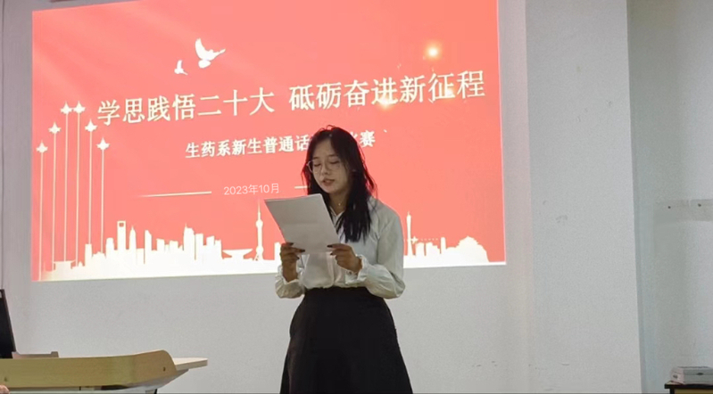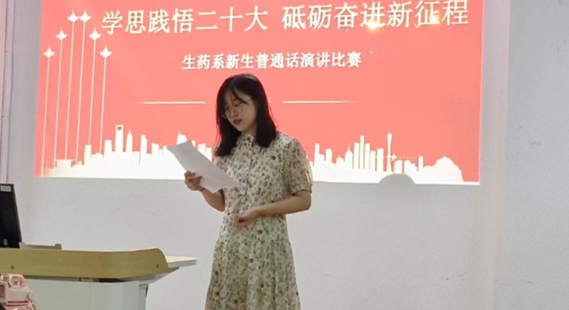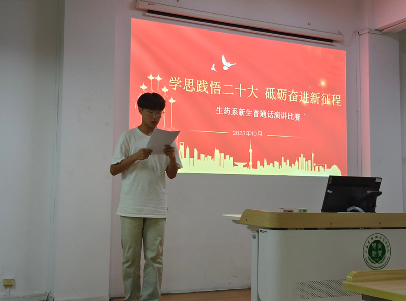 为深入学习贯彻党的二十大精神,引导青年学生立志做有理想、敢担当、能吃苦、肯奋斗的新时代好青年,提升学生语言表达能力和综合素养,以昂扬的精神面貌迎接大学生活,10月7日,生药系举行“学思践悟二十大 砥砺奋进新征程”2023级新生演讲比赛。