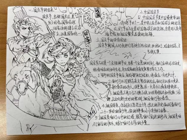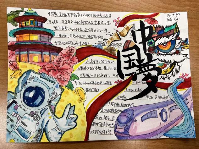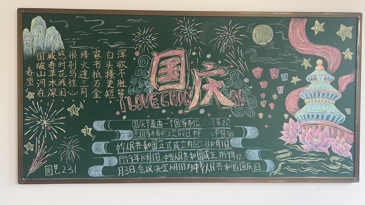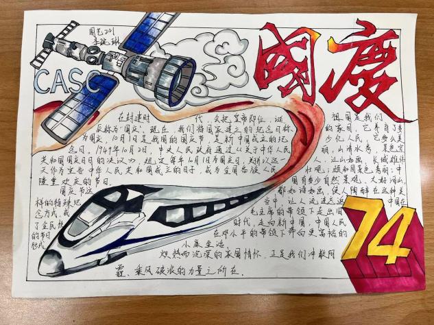 10月1日-10日,同学们通过不同方式积极参与本次活动。有的走访了红色革命教育基地,沉浸式学习榜样人物事迹,用照片、视频记录下感人画面;有的录制了爱国歌曲或手势舞、朗诵红色经典篇目等视频,通过语言和歌声向祖国告白;有的设计制作了主题黑板报、手抄报,融合航天精神、先锋楷模、科技进步等元素,每张画都惟妙惟肖,栩栩如生。