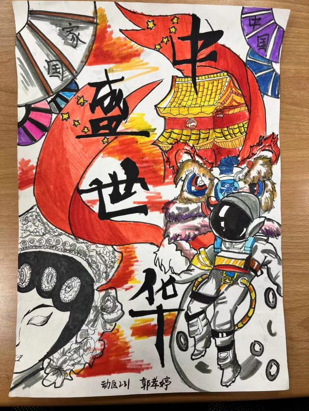 为深入学习贯彻党的二十大精神,落实立德树人根本任务,广泛开展爱国主义教育,厚植爱国主义情怀,提升民族自豪感,深刻感受新中国成立74年来的伟大成就和巨大变化。中职学生在国庆期间开展“妙笔生花绘蓝图 礼赞祖国情意浓”主题活动,100余名学生参加。