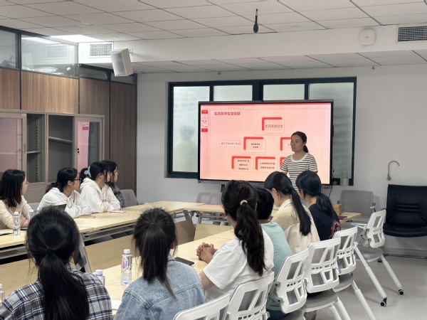 会上,上政第18学生党支部书记裘欣璐分享了“全国党建工作样板支部”建设的宝贵经验,介绍了支部在“四色课堂”品牌项目和行思党员理论宣讲队和行思党员志愿服务队建设方面的成功做法。第19学生党支部书记张常钰就学生党员、入党积极分子如何在日常生活中践行劳动精神、增强服务意识分享了“红育先锋队”的建设经验。生药系学生党支部书记范小雪简要介绍了支部情况,着重就“如何让理论学习更入脑入心”“如何提升入党积极分子培养质量”“如何系统化开展党建工作、树立党建品牌”三个党建工作的难点和突破点与上政师生交流学习工作经验和成功做法。