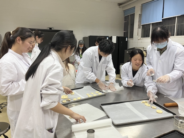 会后,与会师生移步至食品实验室体验我院特色课堂,动手参与蛋挞、司康的制作,了解食品安全与营养的相关知识。