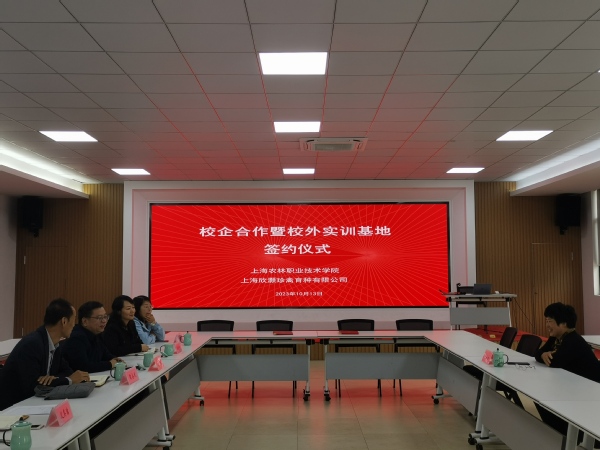 2023年10月13日,上海农林职业技术学院与上海欣灏珍禽育种有限公司在奉贤进行校企合作签约仪式。上海农林职业技术学院副院长张江、上海欣灏珍禽育种有限公司总经理袁红艳及学院相关负责人参加了签约仪式。仪式由校企合作办公室主任刘秀云主持。