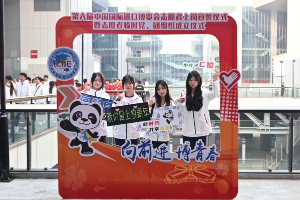 10月17日上午,第六届中国国际进口博览会志愿者上岗宣誓仪式暨志愿者临时党、团组织成立仪式在国家会展中心(上海)虹馆举行。学院党委副书记陈谊、团委书记胡慧春、团委进博会志愿服务负责老师及100名上农“小叶子”志愿者代表参加。