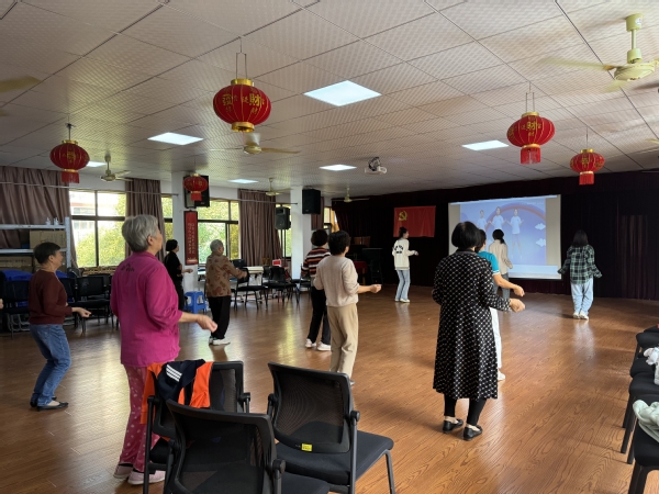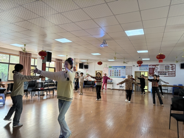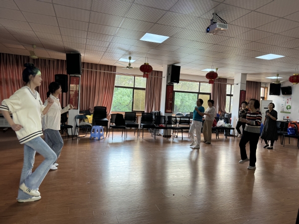 活动前,志愿者们精心准备了一支健身保健操,在活动中带领荣乐社区的老年人一起载歌载舞。对学舞中有疑惑的老人,志愿者实施面对面、手把手教学,他们青春洋溢,动作娴熟,与老人们探讨舞蹈的乐趣,希望他们能够通过简单的健身操来锻炼身体,增强体质。