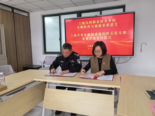 为了不断加强基层党组织建设,提升基层党组织组织力,拓展党组织建设平台和资源,10月20日,在综合楼701会议室,生药系党总支与上海市青东强制戒毒所签订党建共建协议。上海市青东强制戒毒所副所长顾静勇、上海市青东强制戒毒所进屋保障科科长周伟强、上海市青东强制戒毒所办公室副主任王文进、生药系主任卢洪秀等相关人员参加会议。会议由生药系党总支书记蒋洁主持。