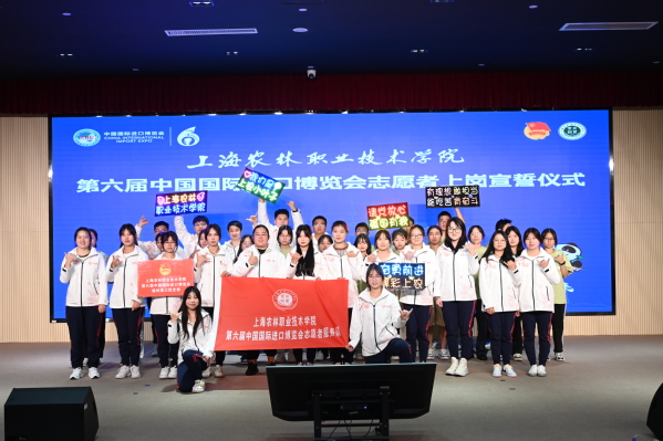 最后,全体志愿者用最真诚、最响亮的青春之声庄严宣誓:奉献友爱、互助进步;追求卓越、全力以赴;奋勇前进、博彩上农;向前进、博青春;为进博、一起来,充分表达了上农“小叶子”践行志愿精神、全心为第六届进博会奉献的信心与决心。