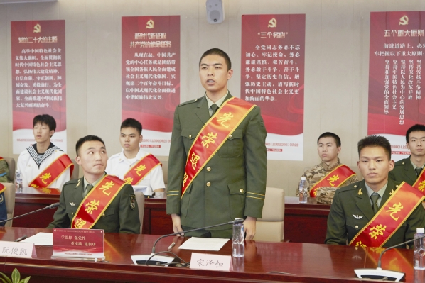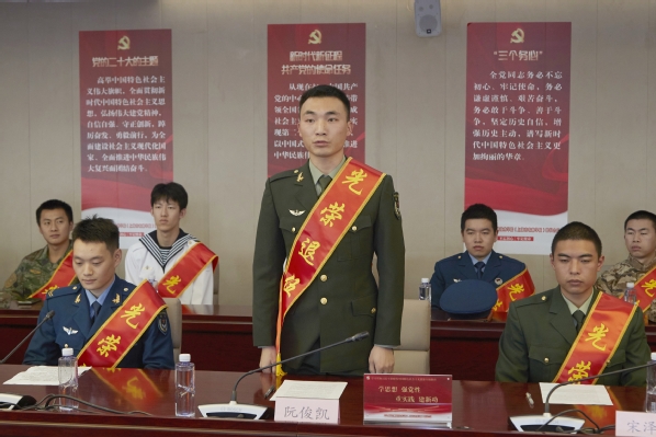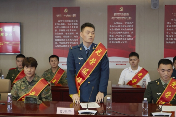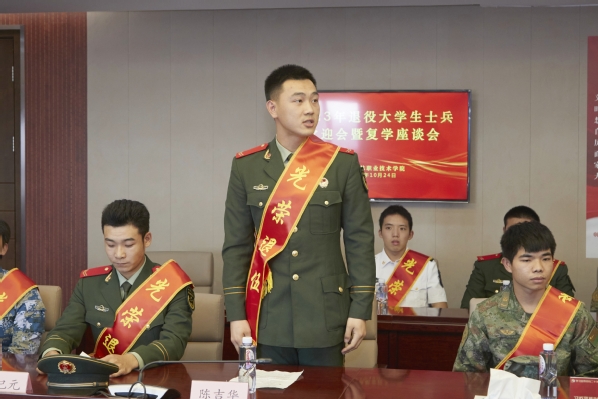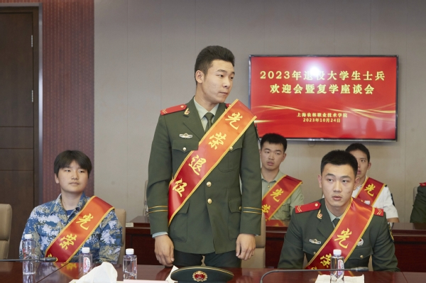 退役大学生士兵代表:创意系农经212班侯纪元、生药系环境211班陈吉华、智工系设施211班曹琰澄、动科系动医221班阮俊凯、植科系工程221班宋泽恒分别介绍了各自的军旅生活,分享了从戎心路历程,畅聊军旅生涯对自己的历练和提升,表示返校后将加倍珍惜大学生活,发挥军人本色,勤奋学习,学有所成,努力为祖国繁荣发展贡献自己的力量。