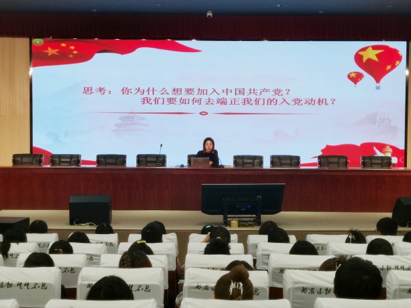 组织员杜孟静以“我心向党 不负韶华”为主题,围绕“什么是中国共产党?”“为什么要加入中国共产党?”“怎样做才能够成为一名中国共产党党员?”三个问题,带领全体新生团员共同思考并给予解答。通过讲述革命先烈事迹,将中国共产党精神和形象具象化,让新生团员更真切地感受和了解“什么是中国共产党”,进一步端正入党动机。系统介绍了入党流程、撰写入党申请书以及思想汇报的要求和注意事项,使新生团员对于入党形成一个整体认识,指导新生团员在校的学习和生活,针对同学们提出的问题给予解答和建议。