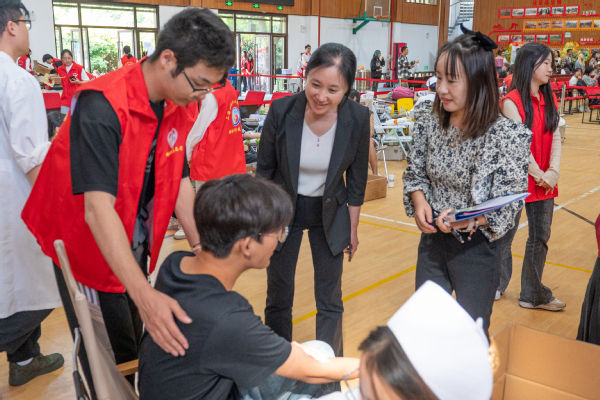 动科系副主任战晓燕及相关辅导员亲临献血现场,关怀慰问每位献血学生。战老师与学生亲切交谈,询问献血学生的情况和感受,叮嘱同学们注意休息和健康饮食,对他们这种勇于奉献的精神给予了高度肯定和赞扬。