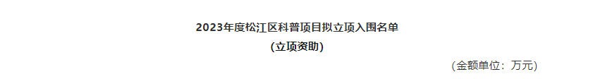 近日,根据上海市松江区科学技术委员会《关于2023年松江区科普项目拟立项入围名单的公示》文件,我院王玉春老师《荷花生长、生态和生活系列科普活动》和蔡会敏老师《基于社区公园生境的科普研学体验项目》入围2023年松江区科普项目拟立项名单,分别获得资助金额5万元和2万元。