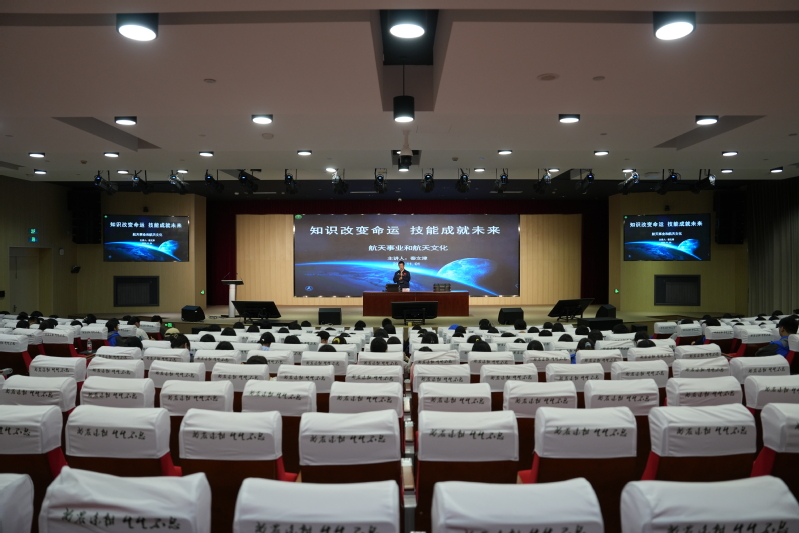秦老师以“知识改变命运 技能成就未来”主题,从中国航天发展的过去、现在和未来出发,向同学们讲述了我国航天事业的发展历程,让同学们进一步了解航天文化,感受航天科技的神奇和魅力。秦老师用有趣幽默、通俗易懂的语言,通过生动的图片和视频调动了大家的好奇心和求知欲。现场,同学们认真聆听、积极互动。