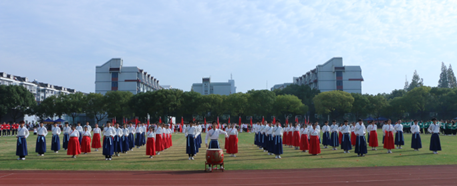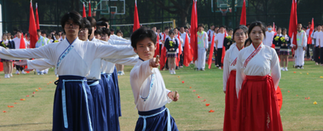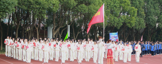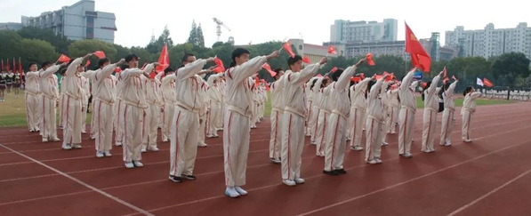 开幕式正式开始,伴随着运动员进行曲,国旗队、校旗队、红旗队、鲜花队,依次走过主席台,拉开运动会的篇章。