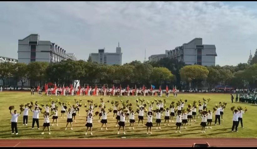 比赛当天,啦啦操队员身着统一服装,手持金色啦啦操花球,精神饱满地跑向运动场。音乐响起,表演拉开序幕。整齐划一的队形、优雅的舞步、利落的动作,精彩的表演引来阵阵掌声。表演不仅展现了植科学子的默契和协同能力,更通过富有创意的编排,向师生展示了植科系的活力和创新。