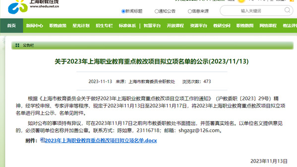 根据《上海市教育委员会关于做好2023年上海职业教育重点教改项目立项工作的通知》(沪教委职〔2023〕29号)文件精神,学院积极开展2023年上海职业教育重点教改项目的遴选推荐工作,经部门申报、专家评审、公示后,共申报3个项目;此次获批的2个项目,围绕产教融合、思政育人开展研究。