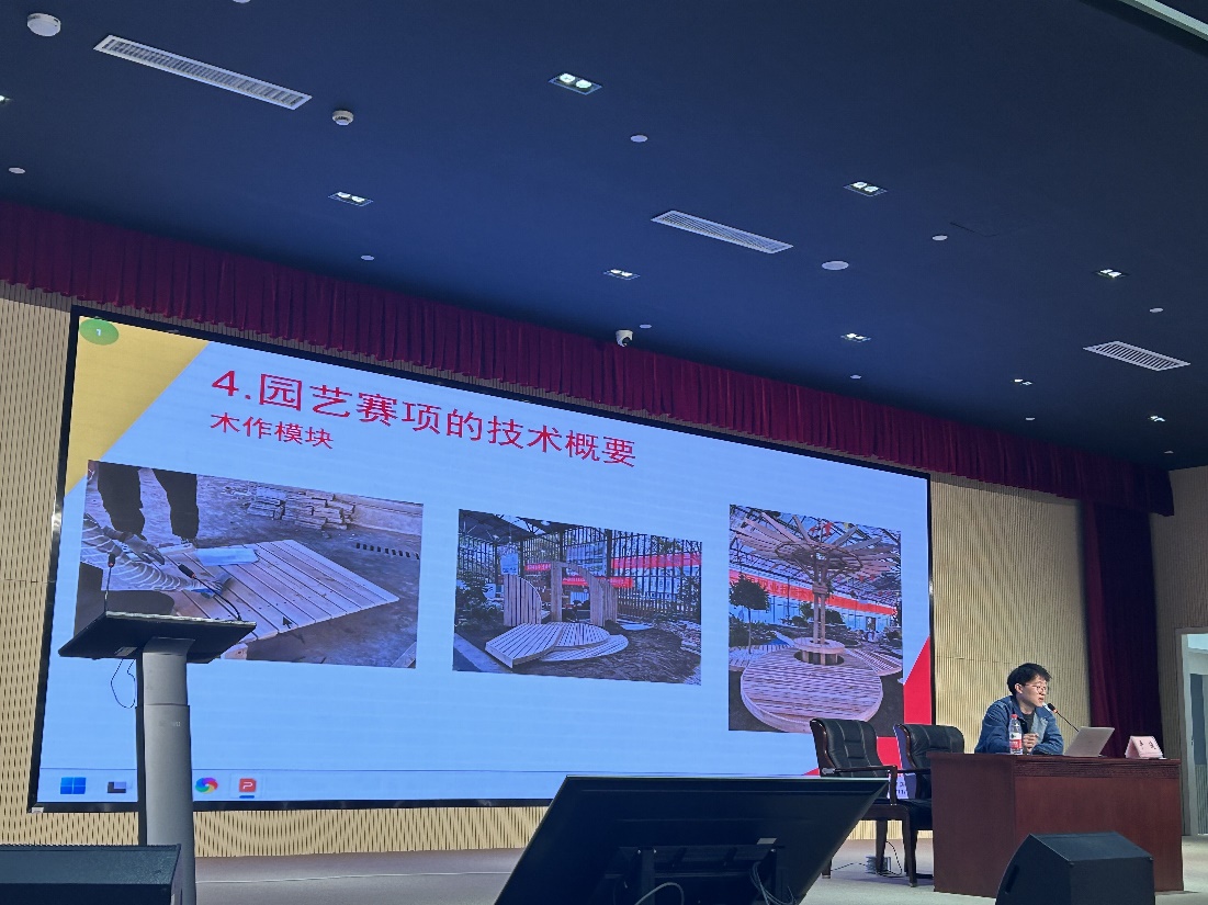 严迪作为园艺项目世赛选手以及全国技术能手,结合参赛经历,介绍了世赛的发展历程以及园艺项目的参赛历程,详细介绍了园艺项目的模块内容和考核方法,传授自己作为园艺项目中国集训基地主基地培养选手的经验,同时鼓励同学们努力成为“世赛故事中的人”。