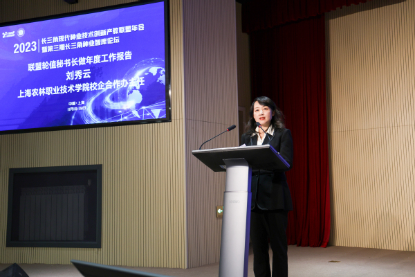 联盟轮值秘书长上海农林职业技术学院校企合作办公室主任、国际合作交流处处长刘秀云围绕创新人才培养模式、共建共享平台、助力乡村振兴、塑造种业技术品牌、开创国际开放办学新局面、助力科技成果转化等六个维度汇报了联盟2023年度在各方面的工作进展及成效。