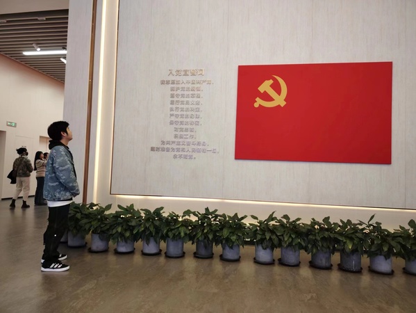 百年风华,初心如磐。在讲解员的讲述下,同学们步入“伟大的开端——中国共产党创建历史陈列”展览,先后参观了“前仆后继·救亡图存”“民众觉醒·主义抉择”“早期组织·星火初燃”“开天辟地·日出东方”“砥砺前行·光辉历程”五个版块。从五四运动在中国掀起思想解放之潮,到中国共产党早期组织在上海成立的星火初燃,从中国共产党第一次全国代表大会在上海召开,到正式宣告成立,同学们通过文物、影像、雕塑和沙盘等方式,系统性地学习了中国共产党诞生的光辉历程和中国共产党在上海的革命实践。
