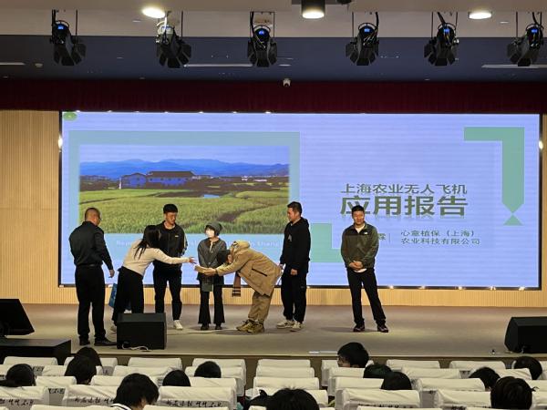 讲座中,金海霖总经理详细介绍了中国无人机全球优势、无人机的应用、农业无人机的应用、上海的各项试验和应用现状及农业无人机未来:数字化应用等内容,结合农业无人飞机在上海粮食无人农场及近几年在飞防植保试验和上海市大疆植保机作业情况等方面的经典案例,鼓励同学们对该领域的技术进行深入学习与研究。通过详实的农业数据平台,分析了设施农业与装备专业学生的就业前景。他表示,农业无人飞机行业人才需求量大,薪酬极具竞争力,但对人才的技能要求越来越高,相关专业的同学要尽早做好专业职业规划。在讲座报告的过程中,积极与学生进行交流问答,并对积极回答的学生发放礼品以资鼓励。同学们反馈讲座收获满满。