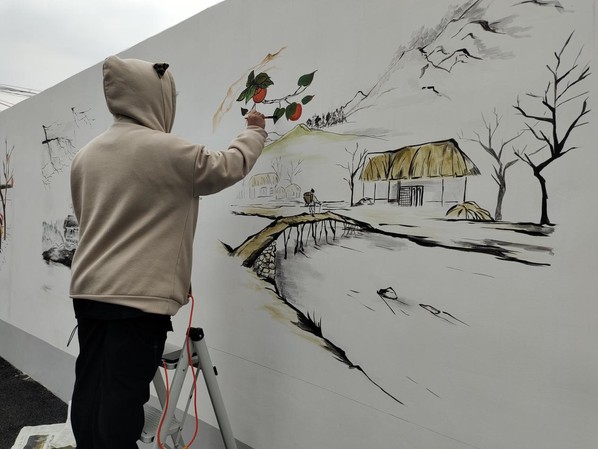 项目从设计到施工完成共计14天,期间遇到降雨、降温、大风等恶劣天气,师生们坚守为农服务使命,克服重重困难,风餐露宿、以苦为乐。绘制过程中,团队成员精益求精,工笔细描,用画笔描绘出了乡村的美丽画卷,把一幅幅有艺术感的画面呈现在村民眼前。