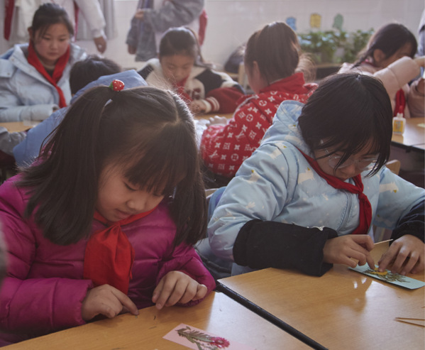 活动前期,智工系事先与花桥村小学老师进行沟通,了解学生的心愿和需求,定制开发课程。活动当天,根据前期沟通,志愿者们为孩子们准备了一堂“植物定格,留住美好”植物压花课程,面对活泼可爱的小朋友,志愿者们采用简单易懂的语言进行指导,详细讲解压花所需的工具和压制步骤,带领小朋友们用手感知植物、用心感受艺术的美好,增加小朋友们对大自然的理解。在志愿者的引导下,小朋友们按照一定的顺序放置各层材料,挑选出自己喜欢的树叶、花瓣摆放于衬纸上,最后用压花机进行固定压实。同时,其他志愿者负责维持现场秩序,时刻关注孩子们的操作安全,并在他们寻求帮助时第一时间伸出援手,用实际行动关爱孩子们。此次活动集知识性和趣味性于一体,不仅带领孩子们了解了压花工艺技术,体验了艺术创作的魅力,还提高了他们的审美能力,让他们感受到美的力量。活动受到了花桥村小学师生们的热烈欢迎与赞扬,易班还为孩子们准备了学习大礼包,孩子们欢呼雀跃,气氛热烈。