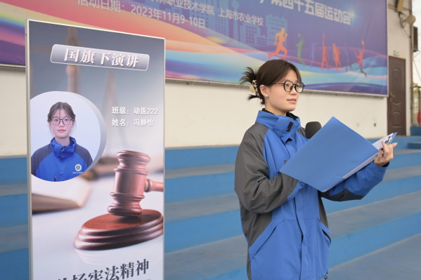 “宪法和法律不仅是全体公民必须遵循的行为规范,更是保障公民权利的法律武器。”动医(五年一贯)222班冯静怡同学以“弘扬宪法精神,争做守法少年”为主题,介绍了宪法的来源与我们息息相关的部分条款,鼓励同学们进一步增强法制意识,深植宪法法律至上的理念,用好法律武器,争做社会主义法治的忠实崇尚者和坚定捍卫者。