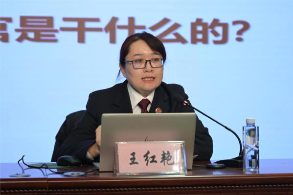 王红艳从国家宪法日、何为法、为什么需要法律、宪法是什么、为什么要学习宪法、宪法的主要内容等方面给大家带来了一堂生动的法治课。结合自己长期从事未成年人检察工作的实际,她以身边的法律问题为案例,告诉同学们遇到问题应该如何利用法律保护好自己,维护好自己的权益。