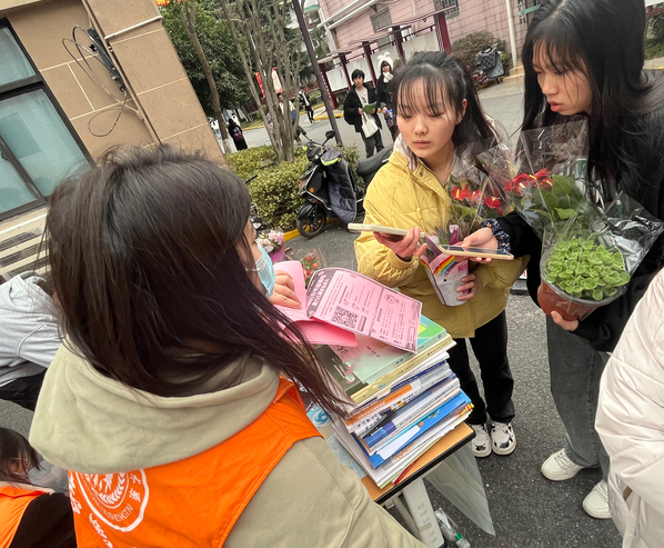 活动现场,志愿者向同学们科普环保知识,提倡同学们践行绿色环保理念,以身作则,维护好宿舍、校园环境。随后,同学们将宿舍内的矿泉水瓶整理好,搬到活动摊位前,在志愿者的引导下兑换绿植。