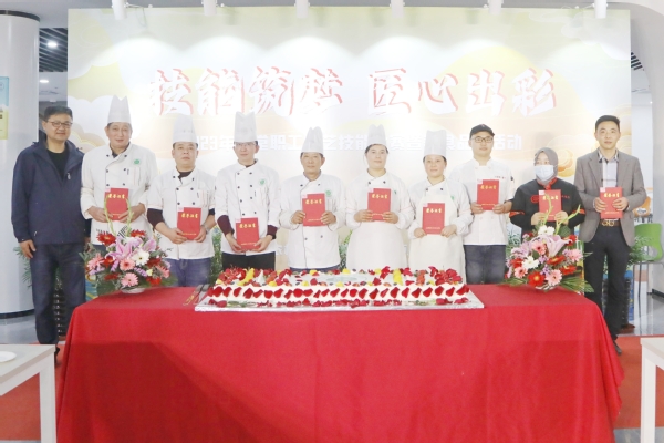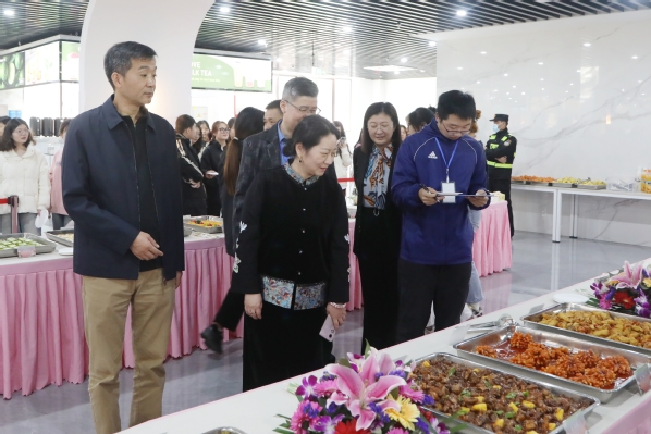 12月8日,由后勤处牵头,联合工会、宣传部、团委以“技能筑梦,匠心出彩”为主题的“2023年食堂职工厨艺比赛暨美食品尝会”活动在第一学生餐厅举行。党委书记蔡红、院长陈立婧、副院长费国强出席,相关部门负责人和200余名师生代表到场观摩。