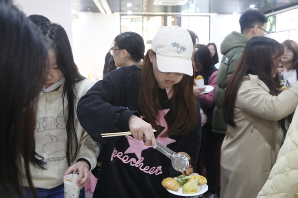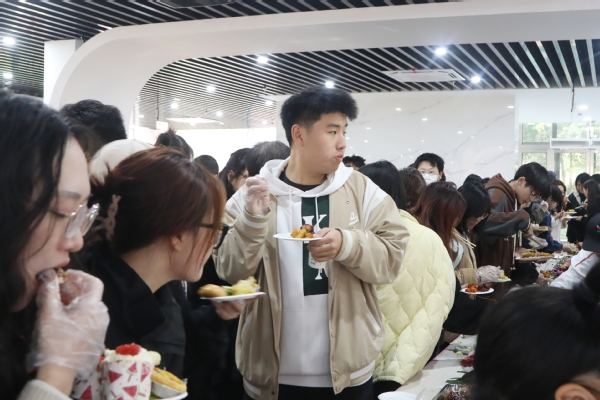 琳琅满目的菜品让师生们目不暇接,纷纷掏出手机拍照留念,菜品香气四溢,引得师生胃口大开,部分师生还亲自上阵动手体验了一把拉面制作和试切土豆丝,让整个活动增添了一份互动和趣味。