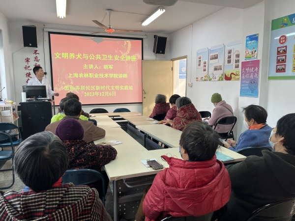 为进一步提升居民文明养犬意识,维护良好公共环境秩序,营造依法、文明、科学养犬的良好氛围,11月29日和12月6日,动科系动物医院负责人沈丽、动科系专任教师胡军走进岳阳街道党群服务中心和黑鱼弄居民区进行“文明养犬与公共卫生安全”主题公益讲座。