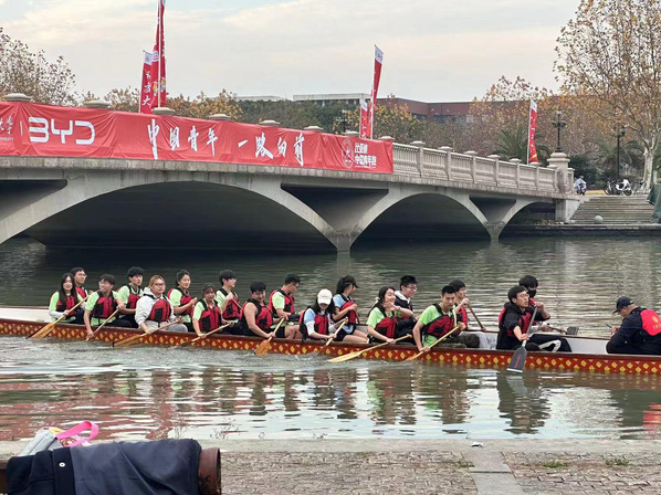 活动期间,同学们还参与了交大龙舟协会组织的划龙舟体验活动,学习了划龙舟的基础动作并上船体验。