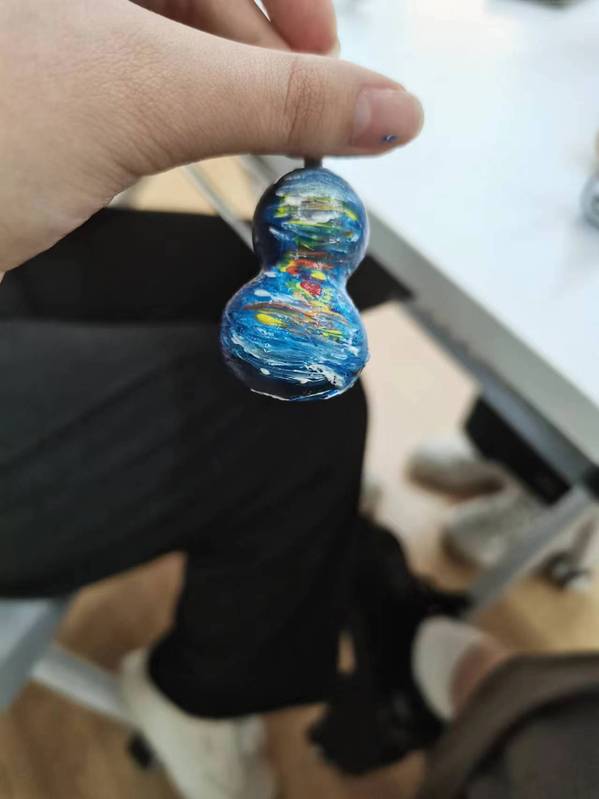 葫芦彩绘开始后,同学们分为8组,按照“起型”“上色”“润色”“描边”和“风干”五个步骤完成葫芦彩绘作品。同学们手持画笔专注地在葫芦上勾勒和填充色彩,每一笔都倾注了心血和情感。葫芦在同学们的手中,不再是普通的瓜果,而是一种表达情感的载体。