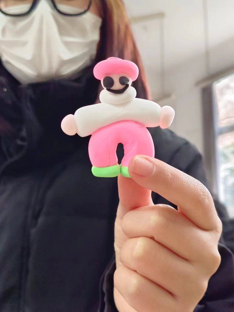 活动现场,志愿者向同学们讲解了泥塑文化和捏制造型的技巧,并现场演示操作。同学们认真聆听,在志愿者的指导下动手操作,通过学习团圆、压扁、粘合、填充的方法塑造简单的立体物像,将彩泥塑造成不同的形状和样式。现场同学精心揉捏、细心雕琢,小小的彩泥作品蕴含着无限的创意,他们大胆构思,发挥奇思妙想,体验手工创造的快乐。