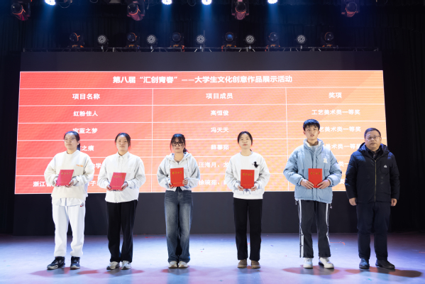 晚会现场还对荣获第九届中国国际“互联网+”大学生创新创业大赛(上海赛区)职教赛道选拔赛、首届上海市职业院校学生创新创意大赛、第八届“汇创青春”上海大学生文化创意作品展示活动一等奖的学生代表以及荣获年度志愿服务标兵、先进个人和优秀寝室长代表进行了表彰,党委副书记、副院长邵阳,党委委员、副院长费国强、副院长张江和工会主席高功辉为获奖学生代表颁奖。