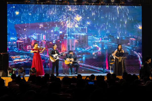 一年一度元旦文艺汇演作为校园文化建设品牌活动之一,是学院践行以文化人、以文育人的优秀办学传统和人文精神的重要体现。整场晚会主题鲜明、催人奋进,200余名演职人员倾情演绎,集中展现了2023年学院高质量发展呈现的新气象、新风貌。同时晚会积极深化典礼育人实效,将学生表演与与舞台艺术有机融合,让同学们能够站在“舞台”中央,拥有自己的“高光时刻”。